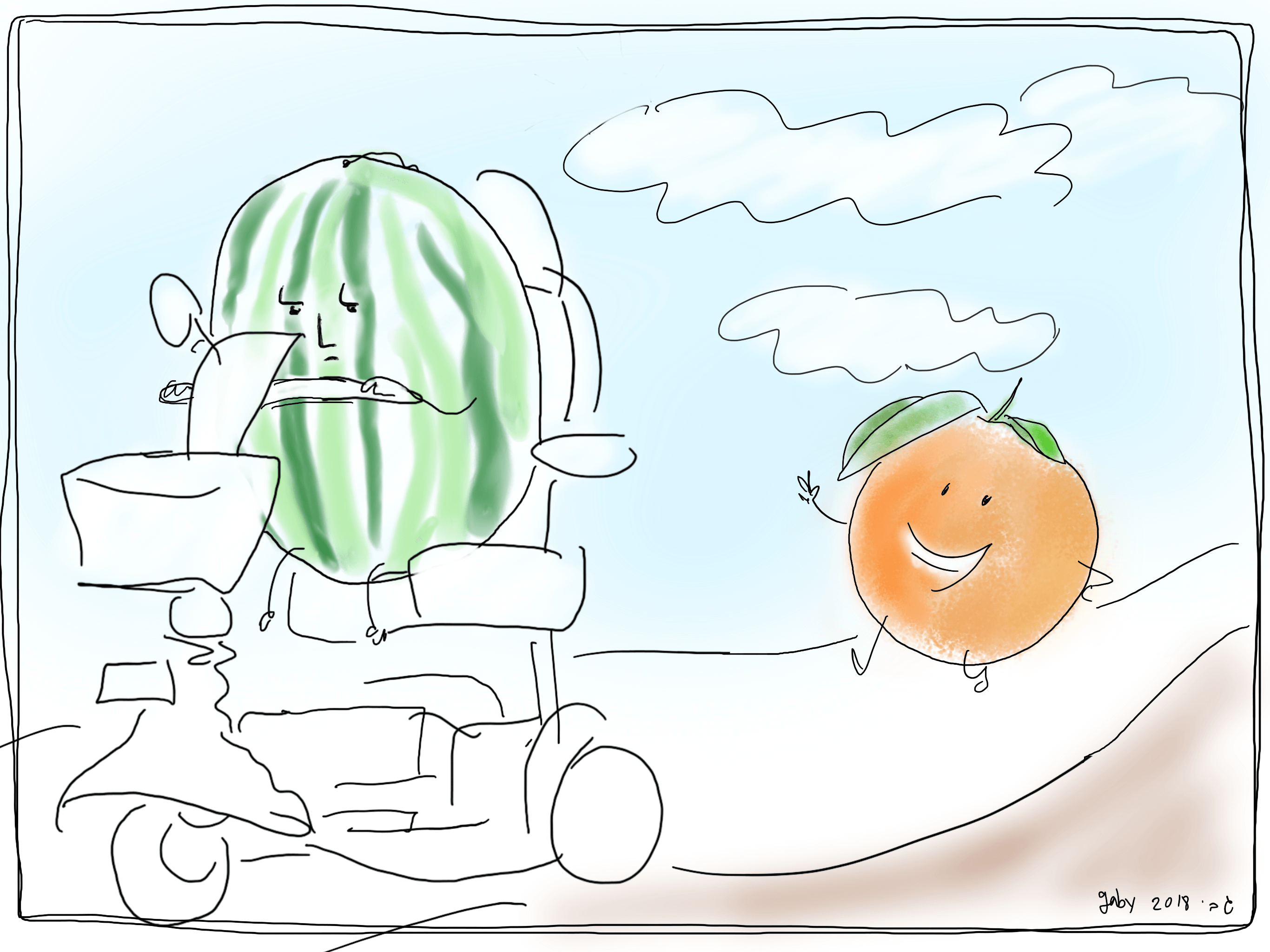 Watermelons out, oranges in.